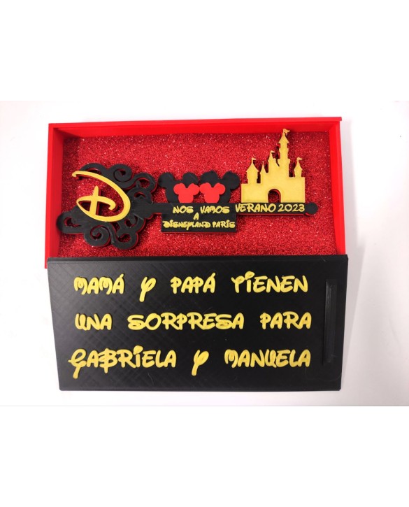 Nuestra Llave Disney personalizada es el regalo perfecto para dar una sorpresa especial: anunciar un viaje a Disney de una forma mágica y única.