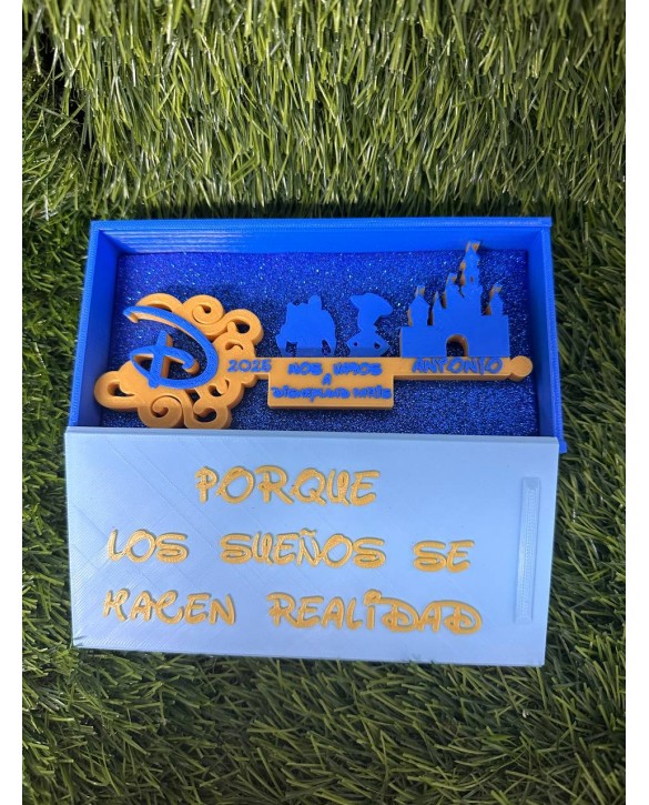 Nuestra Llave Disney personalizada es el regalo perfecto para dar una sorpresa especial: anunciar un viaje a Disney de una forma mágica y única.