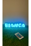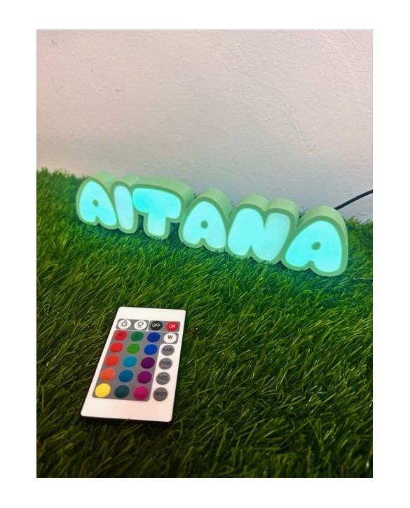 Letrero luminoso personalizado, fabricado en material resistente y con iluminación LED controlable mediante mando a distancia.